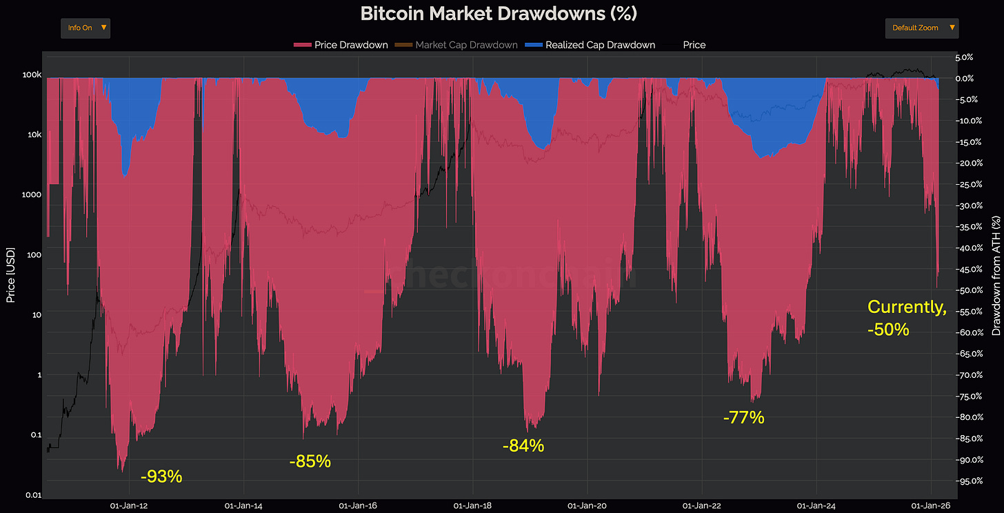 I posted this chart on X this morning to get a feel of sentiment before writing to you all. I did get a few comments saying that people think it’s not likely that BTC gets that low.